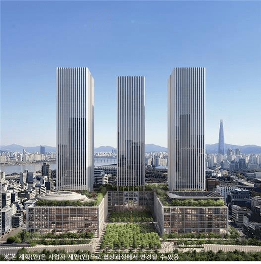 - 핵심 변화: 1개동 초고층 타워 → 3개동 분산 배치 (이른바 ‘삼둥이 빌딩’ 모델)
